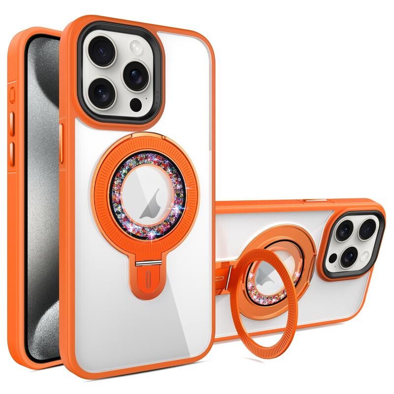 For iPhone 15 Pro Max MagSafe Flip Holder Full Coverage TPU+PC Clear Phone Case(Orange)