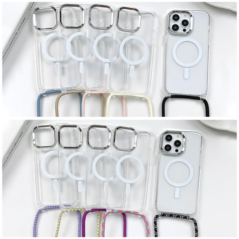 Θήκη τηλεφώνου για iPhone 15 Pro Max MagSafe Μαγνητική PC + TPU με κορδόνι (Κίτρινο Ροζ Γκρι)