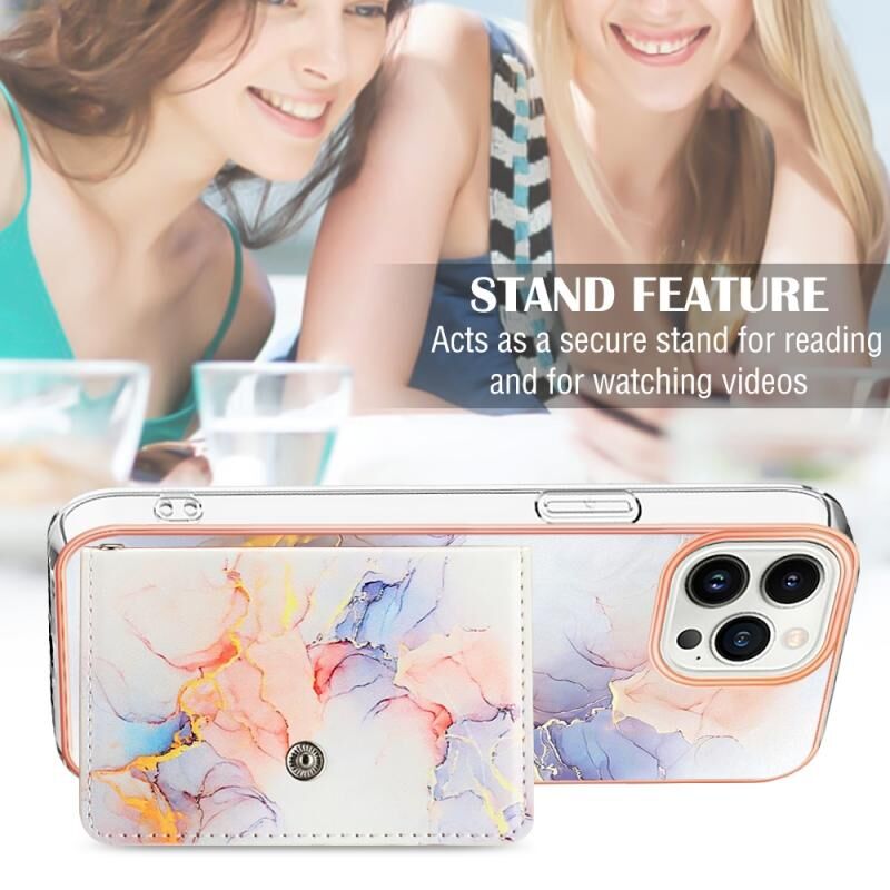 Θήκη τηλεφώνου με σχέδιο μάρμαρου IMD και θήκη καρτών για iPhone 15 Pro Max (Λευκό Γαλαξιακό Μάρμαρο)