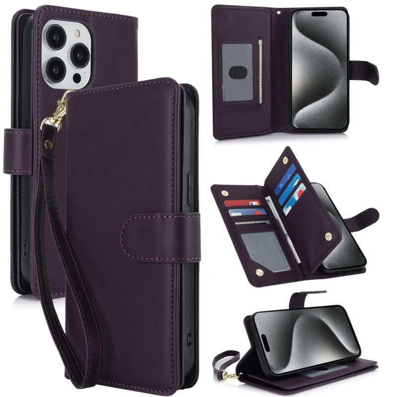 For iPhone 15 Pro Max Multi-Card Wallet RFID Leather Phone Case(Dark Purple)