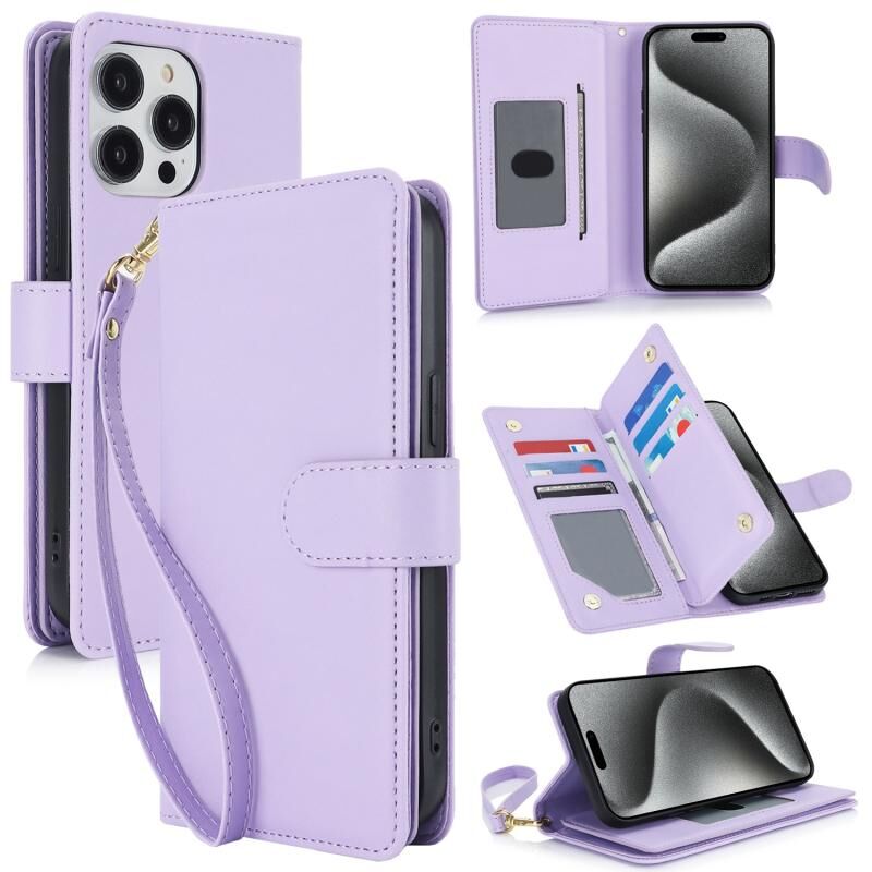 For iPhone 15 Pro Max Multi-Card Wallet RFID Leather Phone Case(Light Purple)