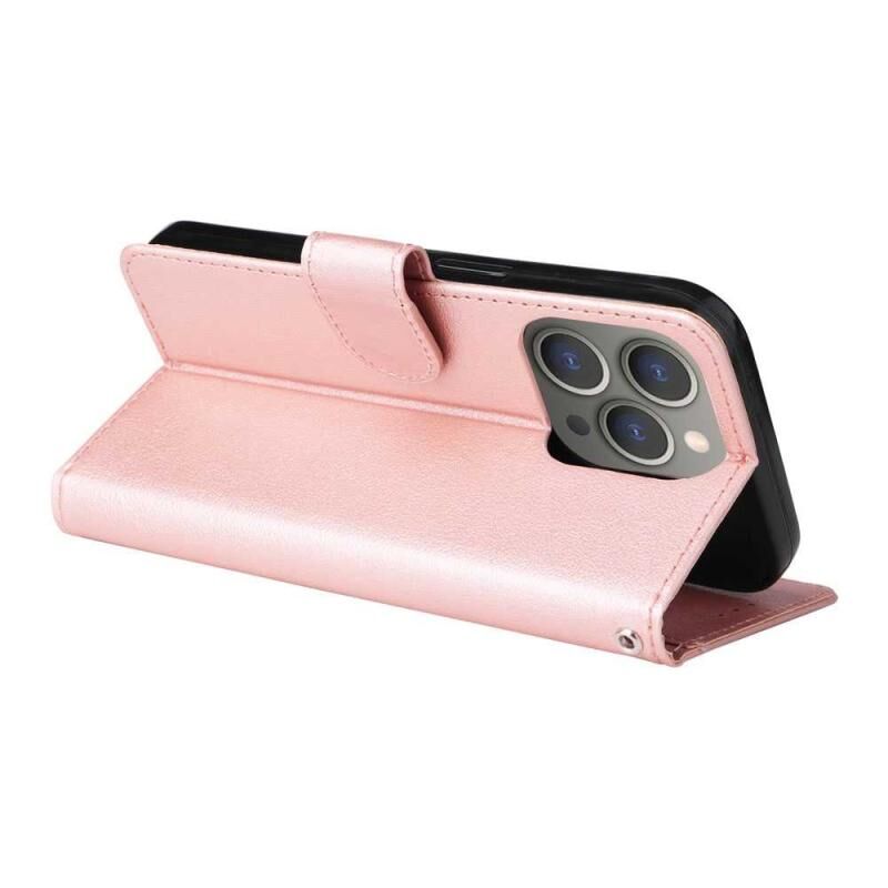 For iPhone 15 Pro Max Multifunctional Horizontal Flip Leather Phone Case with Three Card Slots(Rose Gold)