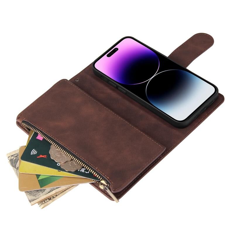 2. Πρακτική Λειτουργία Θήκης Καρτών: Θήκες για κάρτες, τσέπη με φερμουάρ για πορτοφόλι και διαμέρισμα για μετρητά για την αποθήκευση των πιστωτικών σας καρτών, χρημάτων ή μικρών σημειώσεων για καθημερινή χρήση.