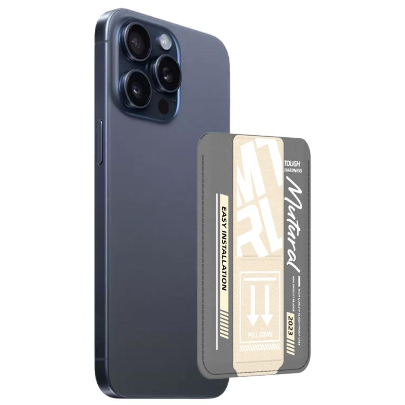For iPhone 15 Pro Max mutural Chuncai Series Magnetic Holder Card Slot(Grey Cream Yellow) (Mutural)