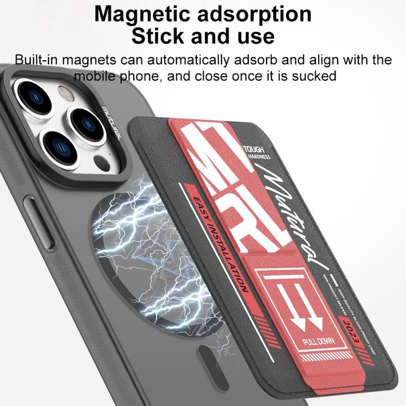Για iPhone 15 Pro Max Θήκη με Μαγνητική Βάση και Θήκη Κάρτας Σειράς Chuncai (Μαύρο Κόκκινο) (Mutural)