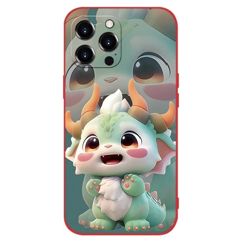 Θήκη τηλεφώνου σιλικόνης αντικραδασμική για iPhone 15 Pro Max, Κόκκινη για την Πρωτοχρονιά (Χαριτωμένος Ροζ Δράκος)
