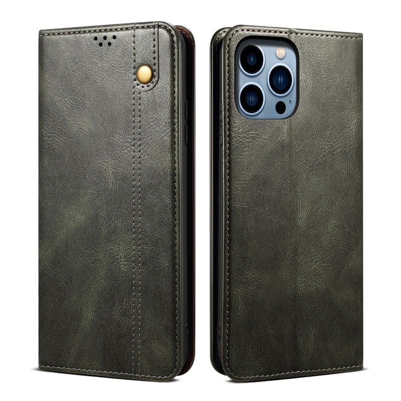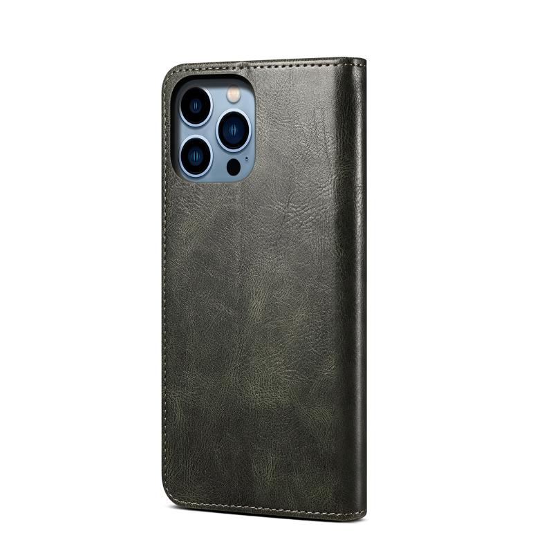 Θήκη τηλεφώνου από δέρμα με υφή Crazy Horse, επικαλυμμένη με κερί για iPhone 15 Pro Max (Μαύρο)