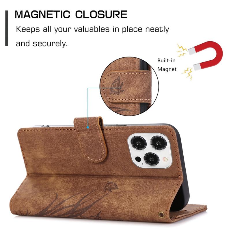 For iPhone 15 Pro Max Orchid Butterfly Embossed Leather Phone Case(Brown)