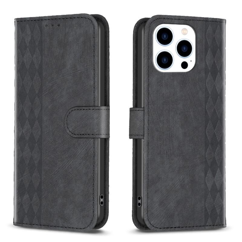 Θήκη τηλεφώνου από ανάγλυφο δέρμα καρό για iPhone 15 Pro Max (Μπλε)