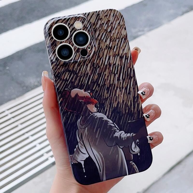 Θήκη κινητού τηλεφώνου PC με σχέδιο λαδομπογιάς και ακριβείς οπές για iPhone 15 Pro Max (Βροχή)