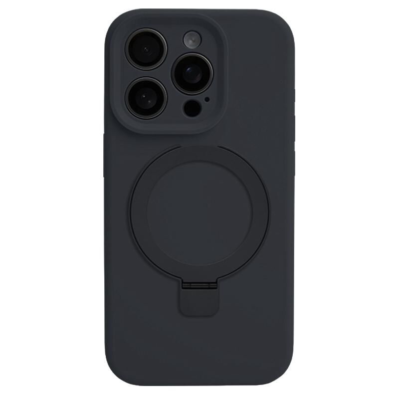 Θήκη τηλεφώνου για iPhone 15 Pro Max, Υγρή σιλικόνη ακριβείας με μεταλλικό δακτύλιο MagSafe (Μπλε της νύχτας)