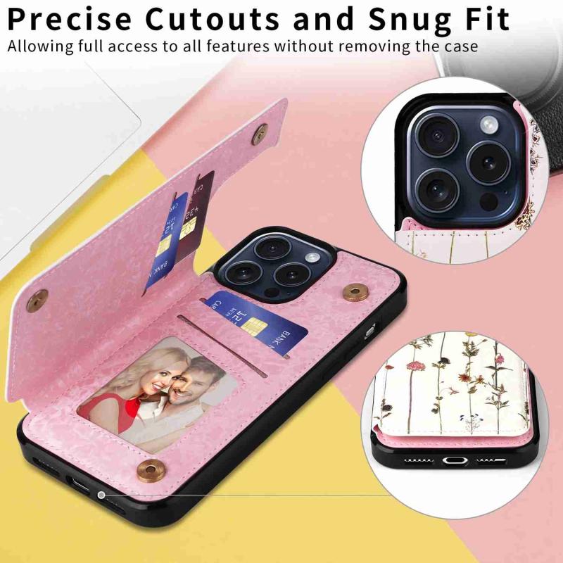 For iPhone 15 Pro Max Printed Double Buckle RFID Anti-theft Phone Case(Dried Flower World)