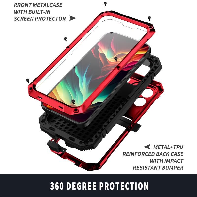 Θήκη κινητού τηλεφώνου R-JUST για iPhone 15 Pro Max, ανθεκτική σε κρούσεις, αδιάβροχη, αδιάβροχη από σκόνη, μεταλλική + σιλικόνης με βάση στήριξης (Κόκκινη) (Κόκκινο)