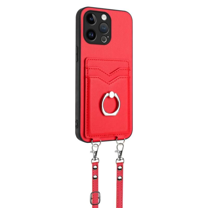 Θήκη τηλεφώνου για iPhone 15 Pro Max R20, θήκη με κορδόνι, δακτύλιο και κάρτες (Μαύρο)