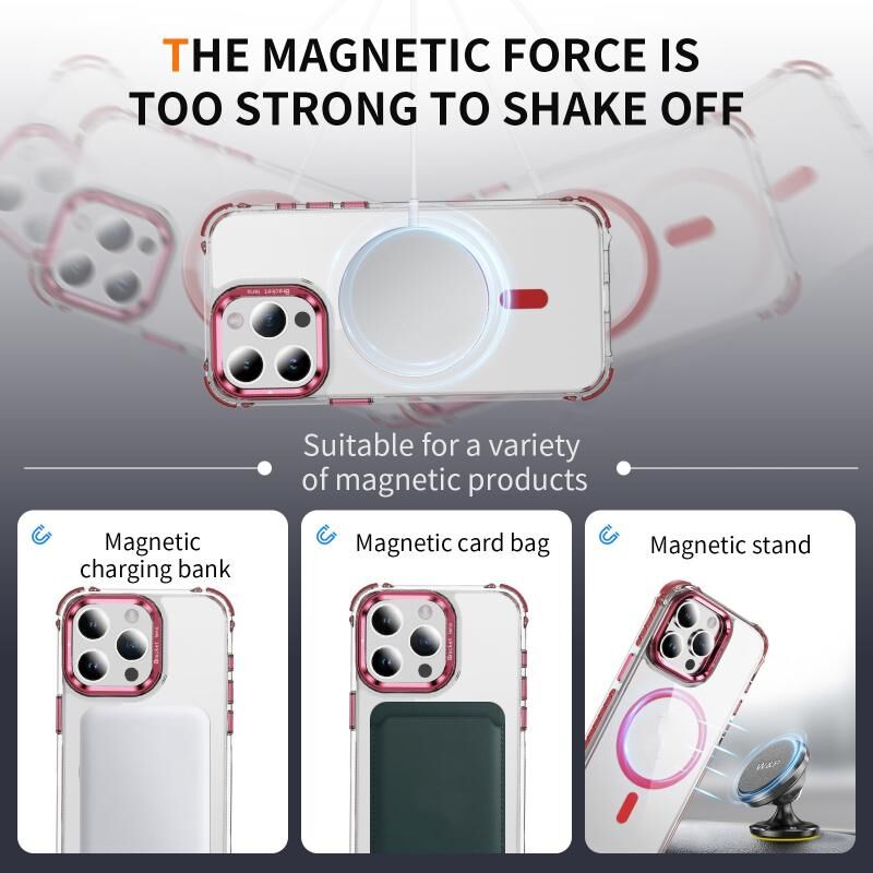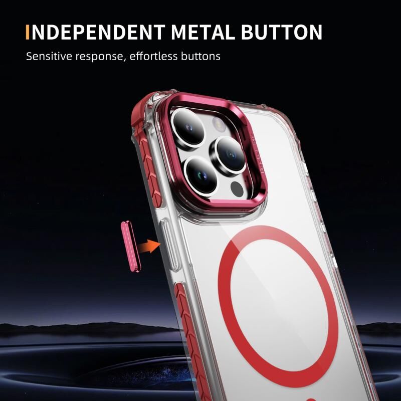 For iPhone 15 Pro Max Rainbow Series Transparent MagSafe Lens Holder Phone Case(Red)