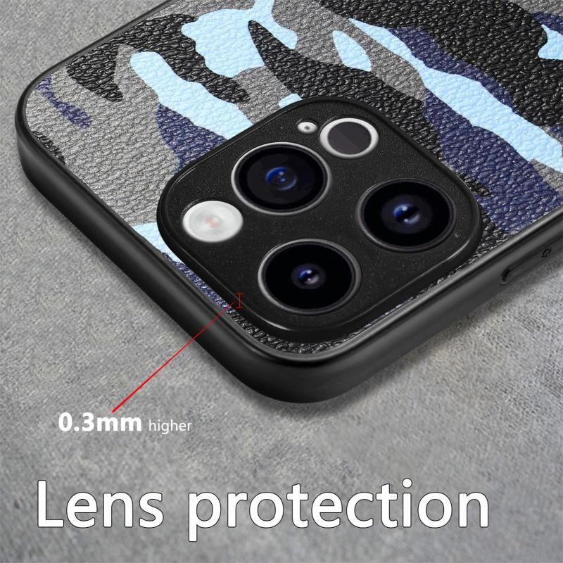 Θήκη τηλεφώνου από δέρμα με ρετρό καμουφλάζ για iPhone 15 Pro Max (Μπλε)