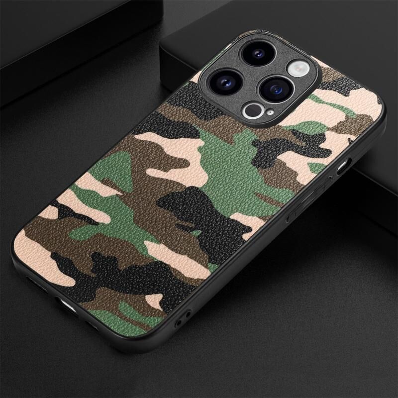Θήκη τηλεφώνου από δέρμα με ρετρό καμουφλάζ για iPhone 15 Pro Max (πράσινο)
