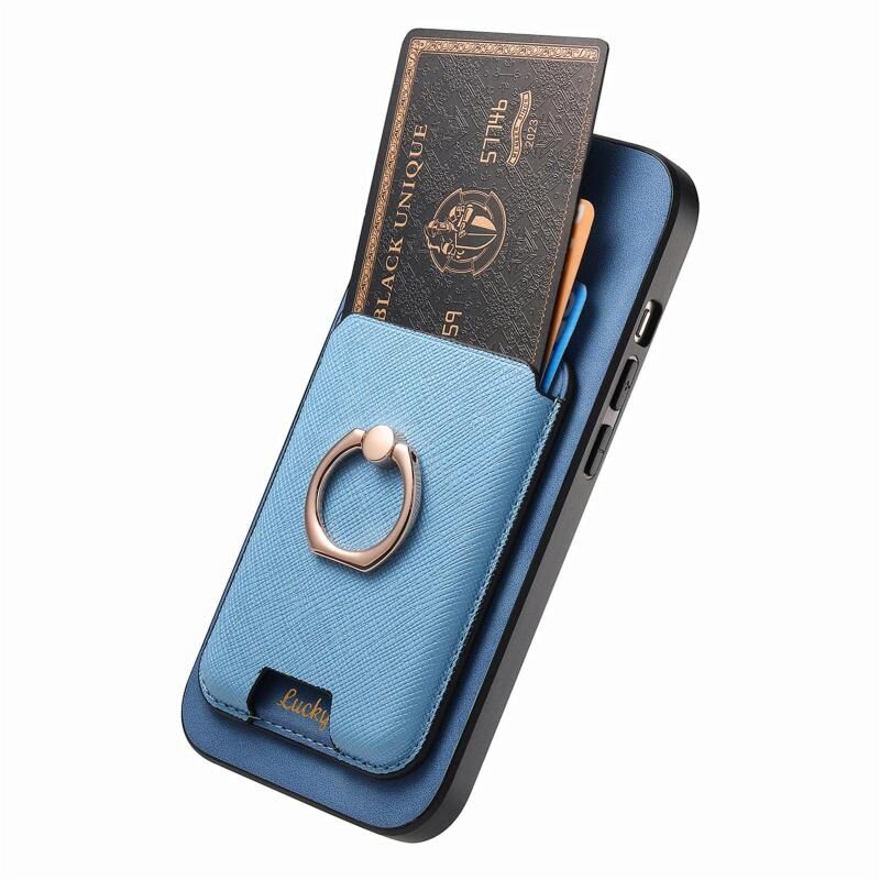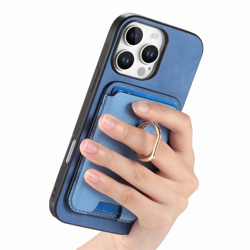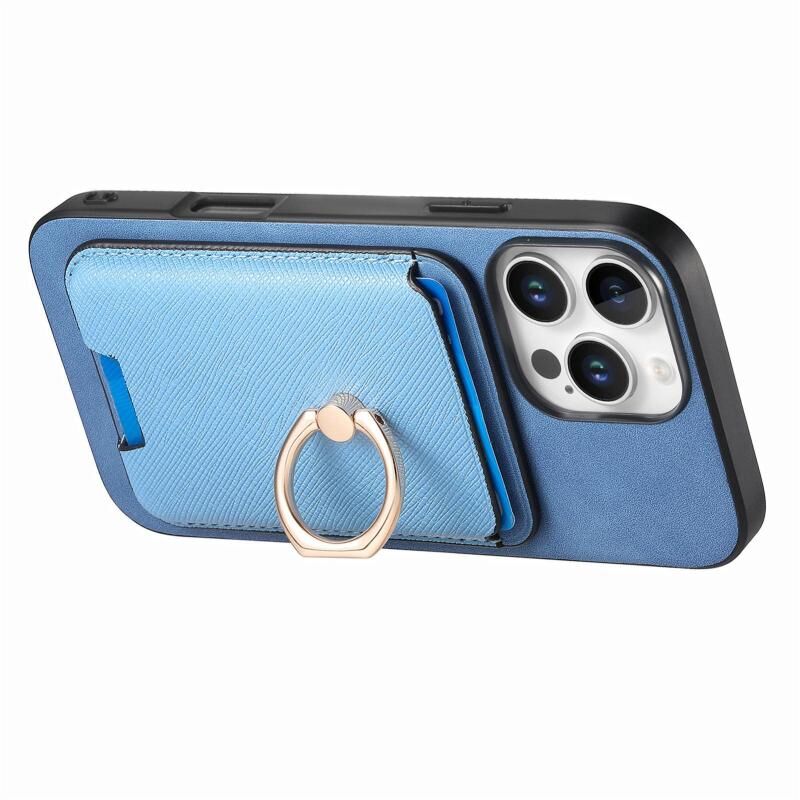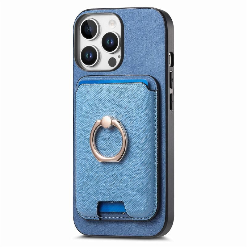 Θήκη τηλεφώνου MagSafe για iPhone 15 Pro Max, Ρετρό Δερμάτινη Τσάντα Κάρτας (Μπλε)