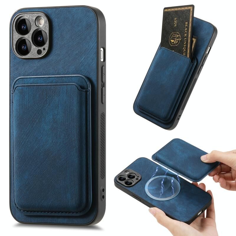 Θήκη τηλεφώνου με μαγνητική σύνδεση και κάρτες από δέρμα retro για iPhone 15 Pro Max (Μπλε)