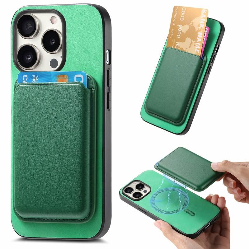 Θήκη κινητού τηλεφώνου για iPhone 15 Pro Max, Retro Magsafe, Τσάντα Κάρτας, Επικάλυψη Πλάτης από PU (Ροζ)