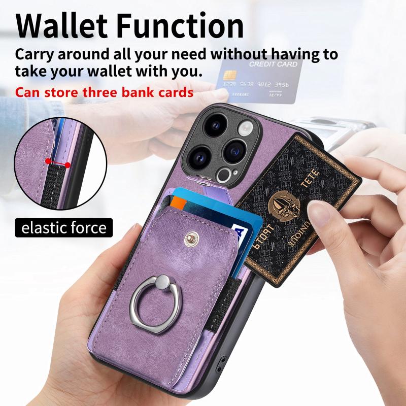 For iPhone 15 Pro Max Retro Skin-feel Ring Card Wallet Phone Case(Purple)