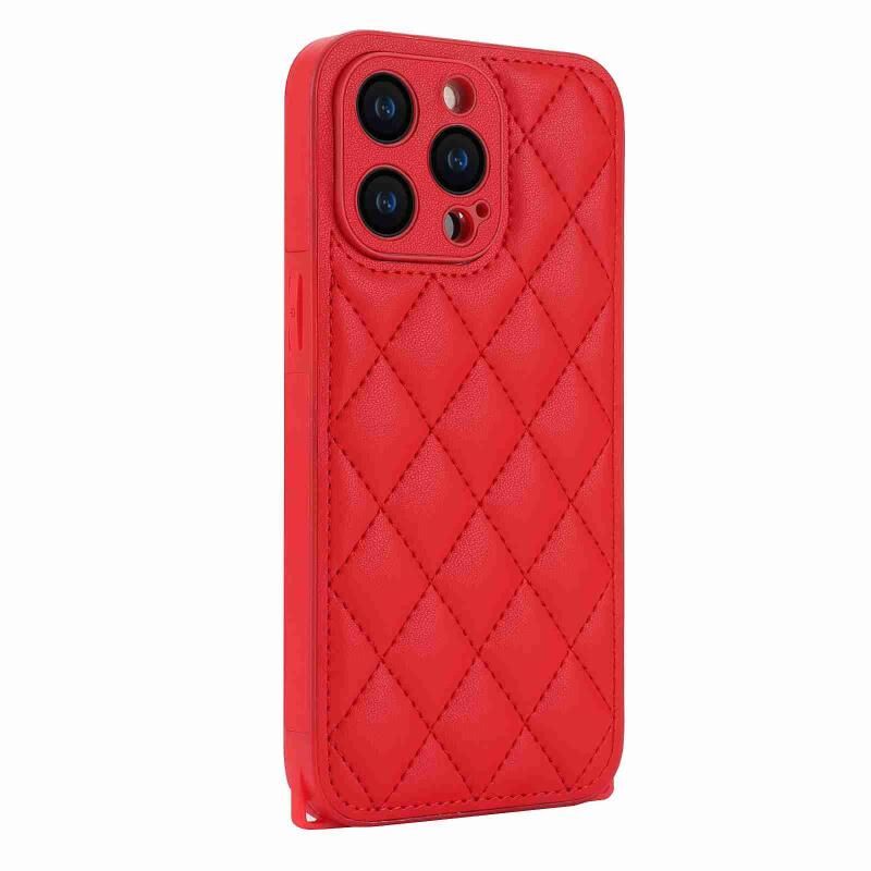Θήκη τηλεφώνου με υφή ρόμβου για iPhone 15 Pro Max με διπλό κορδόνι (Λευκό)