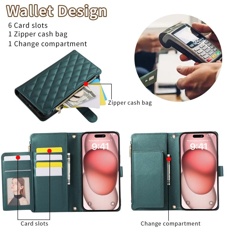 5. Multi-card Wallet Function: Multiple card slots and zipper wallet pockets, cash compartments can store your credit cards and daily small bills.