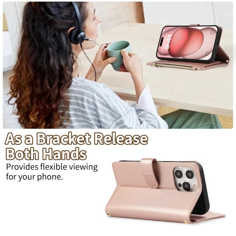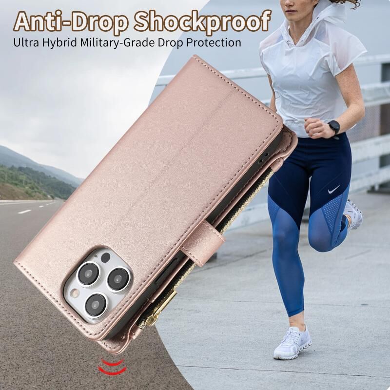 5. Multi-card Wallet Function: Multiple card slots and zipper wallet pockets, cash compartments can store your credit cards and daily small bills.