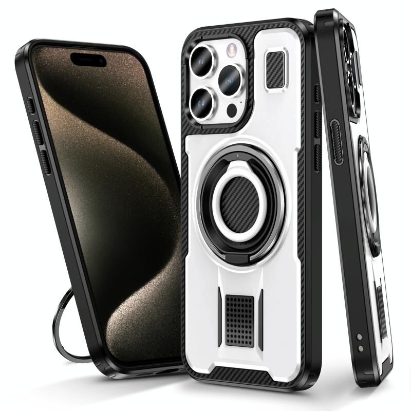 3. Δακτύλιος Σιλικόνης και Βάση: Δεν παρέχει μόνο βασική προστασία, η θήκη λειτουργεί και ως λαβή τηλεφώνου για να κρατάτε σταθερά το τηλέφωνό σας. Και ως βάση τηλεφώνου που επιτρέπει την κατακόρυφη ή οριζόντια λειτουργία σε πολλαπλές γωνίες.