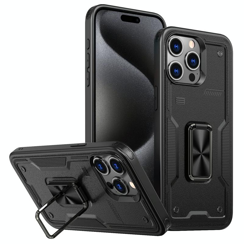 For iPhone 15 Pro Max Ring Holder PC Hybrid TPU Phone Case(Black)