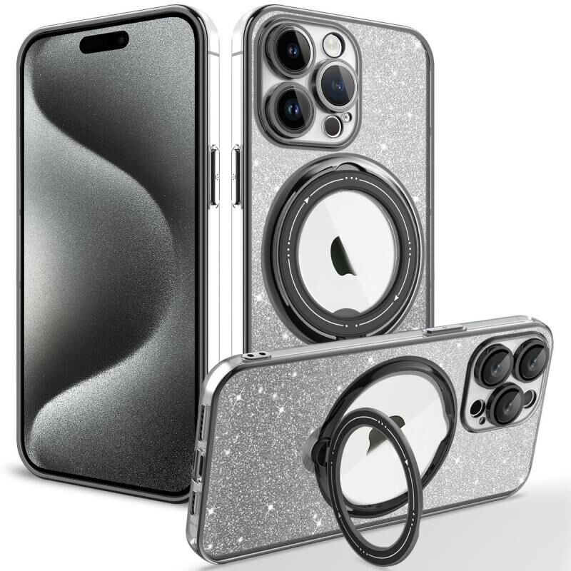 Θήκη τηλεφώνου για iPhone 15 Pro Max με περιστρεφόμενη βάση MagSafe, διαφανές TPU με λαμπερό ντεγκραντέ (Μωβ της Νύχτας)