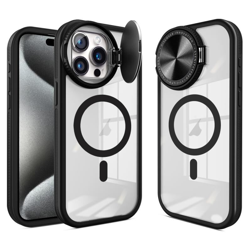 Θήκη τηλεφώνου για iPhone 15 Pro Max, στρογγυλή με Camshield, υβριδική TPU/PC, συμβατή με MagSafe (Μαύρο)