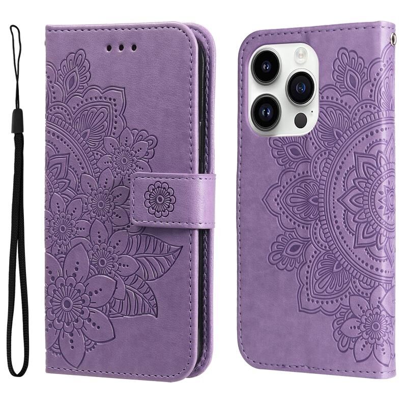 Θήκη τηλεφώνου από δέρμα με ανάγλυφα επτά πέταλα για iPhone 15 Pro Max (Κόκκινο)