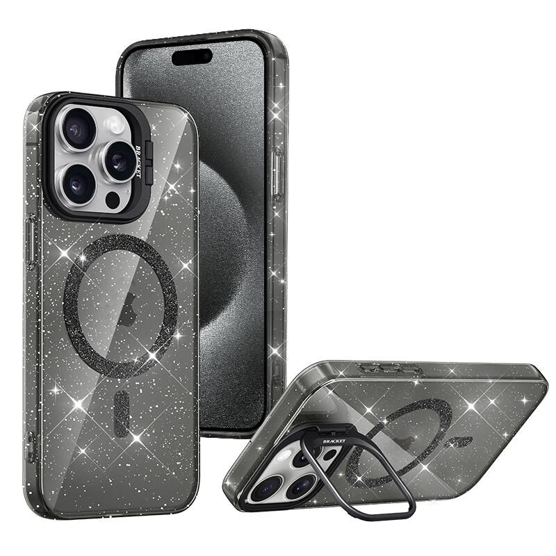 Θήκη τηλεφώνου Shiny Shield MagSafe για iPhone 15 Pro Max με προστατευτικό φακού (Ασημί)