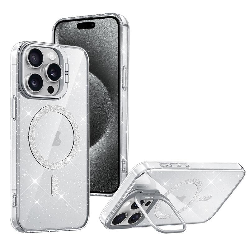 Θήκη τηλεφώνου Shiny Shield MagSafe για iPhone 15 Pro Max με προστατευτικό φακού (Ασημί)