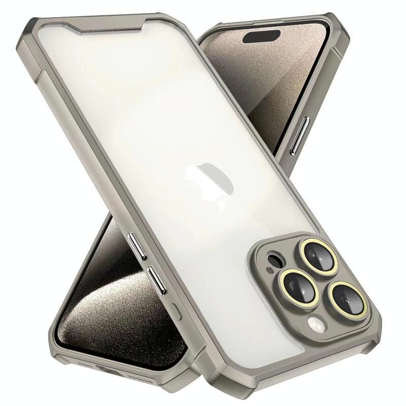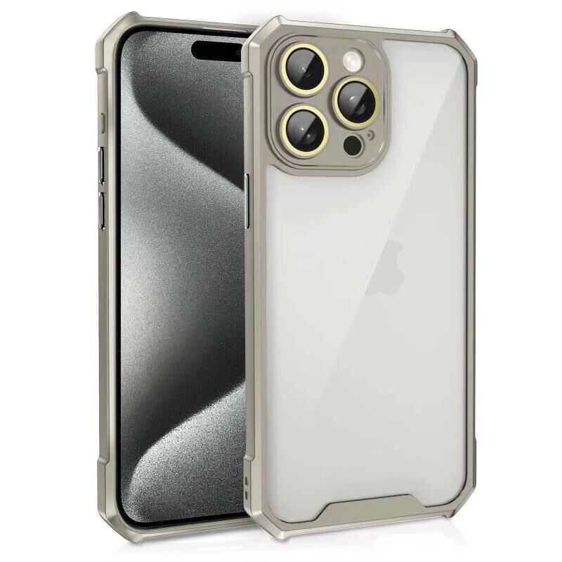 Θήκη κινητού τηλεφώνου για iPhone 15 Pro Max, ανθεκτική στις κρούσεις, από ακρυλικό υλικό με προστατευτική μεμβράνη φακού (Μαύρο)