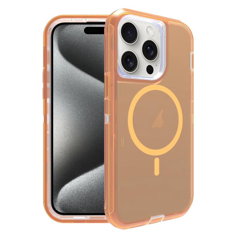 For iPhone 15 Pro Max Shockproof MagSafe Magnetic Phone Case(Transparent Gold)