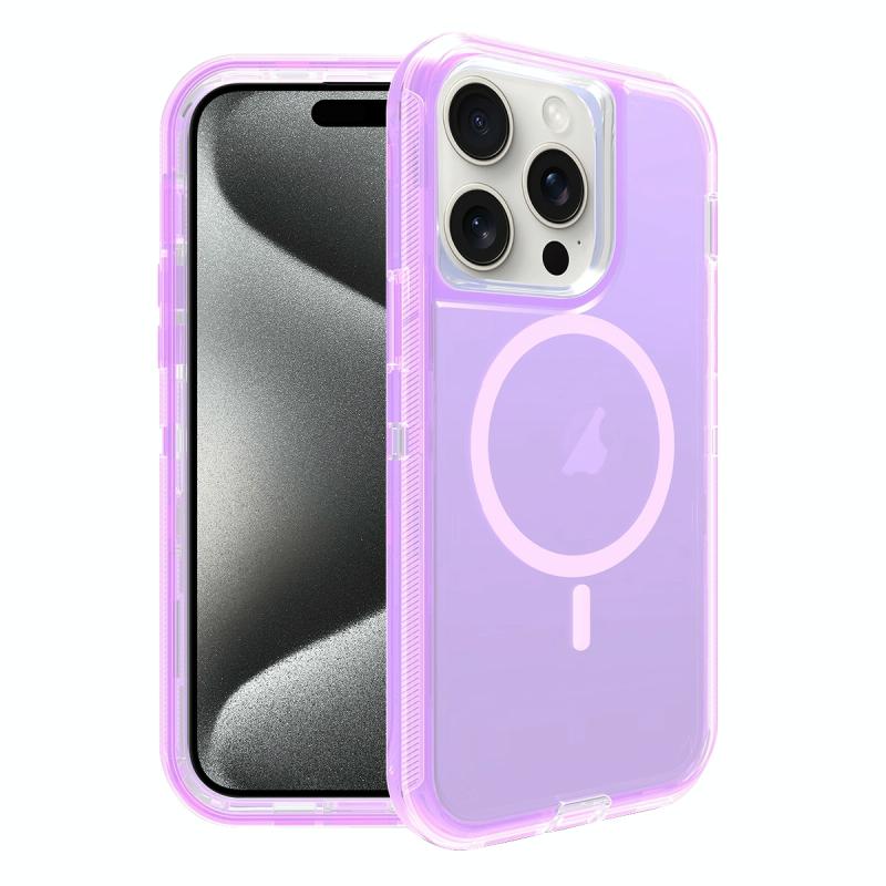 For iPhone 15 Pro Max Shockproof MagSafe Magnetic Phone Case(Transparent Purple)