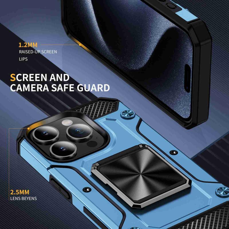 For iPhone 15 Pro Max Shockproof Metal Holder Phone Case(Navy Blue)