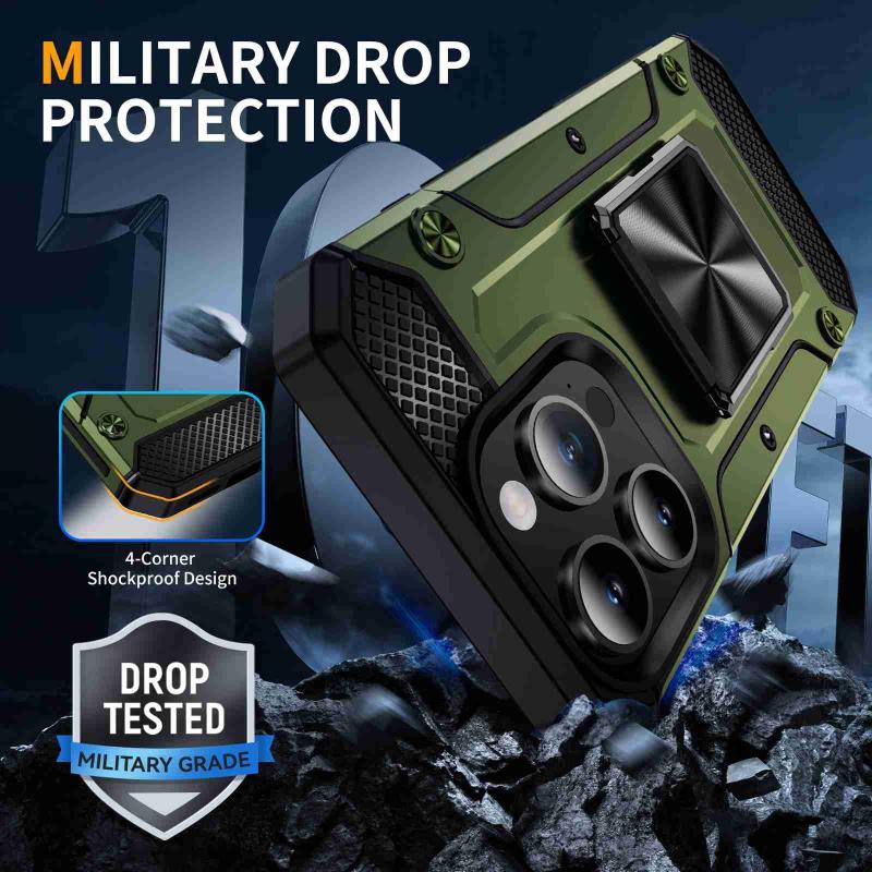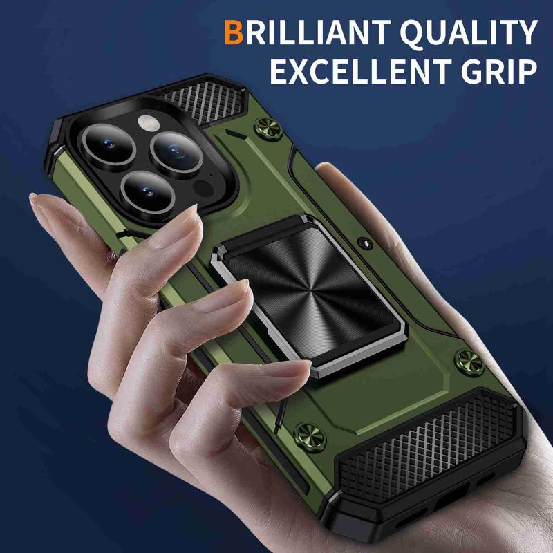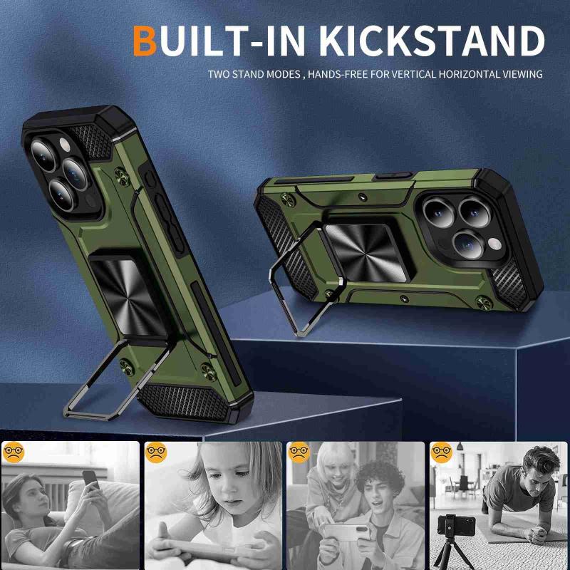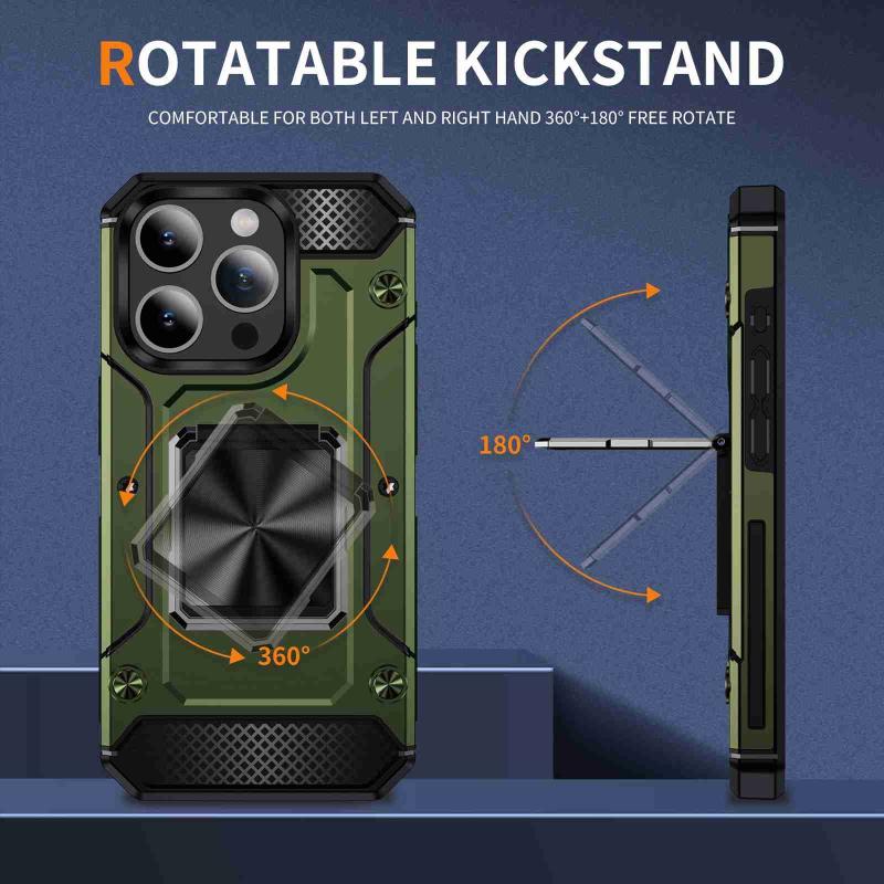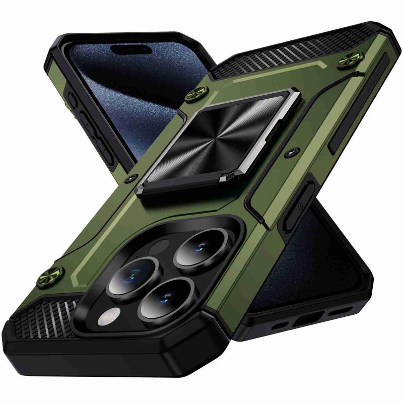 For iPhone 15 Pro Max Shockproof Metal Holder Phone Case(Olive Green)