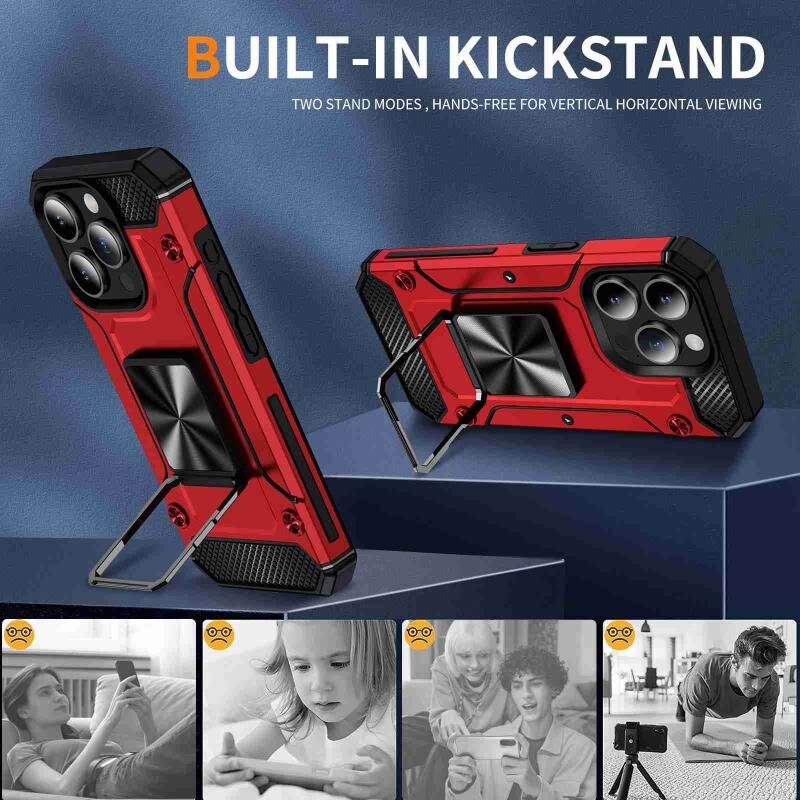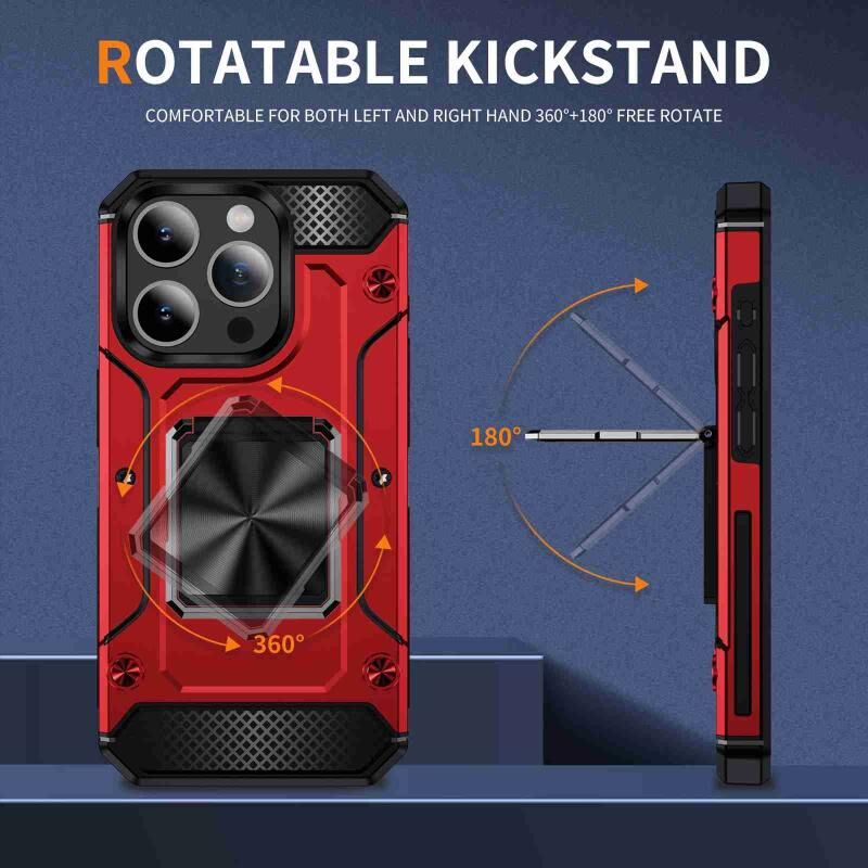 Θήκη τηλεφώνου για iPhone 15 Pro Max ανθεκτική στις κρούσεις με μεταλλική βάση στήριξης (Μπλε ναυτικό)