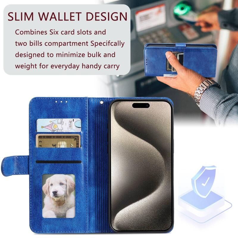 For iPhone 15 Pro Max Simple 6-Card Wallet Leather Phone Case(Blue)