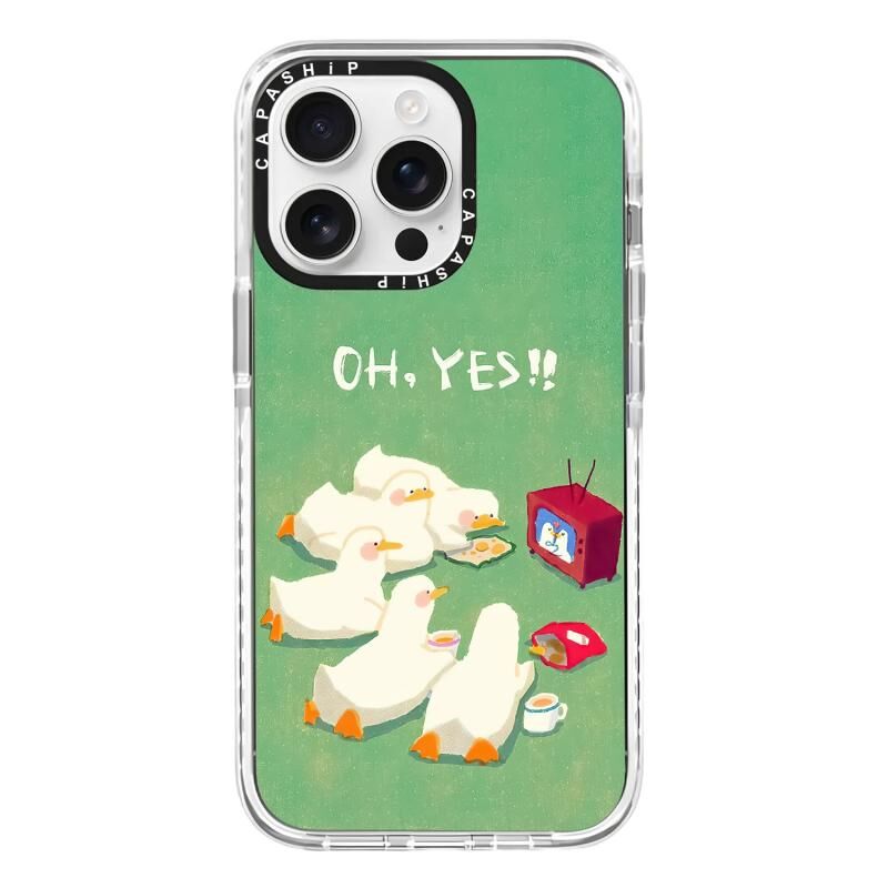 For iPhone 15 Pro Max Simple Illustration Pattern Full Coverage Phone Case(Watch TV Duck)
