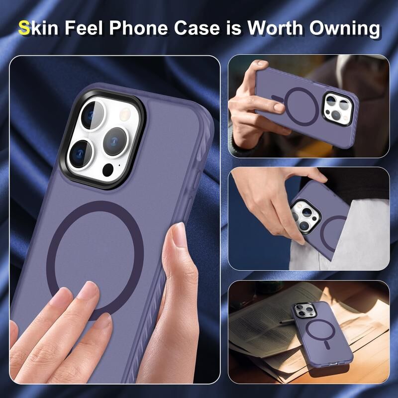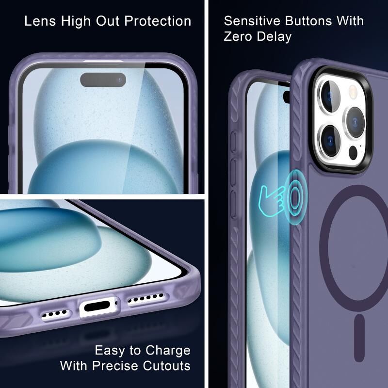 Θήκη τηλεφώνου για iPhone 15 Pro Max με αίσθηση δέρματος, αερόσακο απορρόφησης κραδασμών και MagSafe (Μαύρο)
