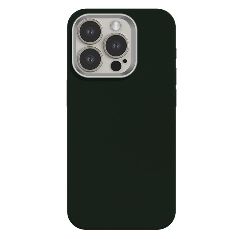 For iPhone 15 Pro Max Skin Feel Fine Leather Texture Metal Lens Frame MagSafe Phone Case(Blackish Green)