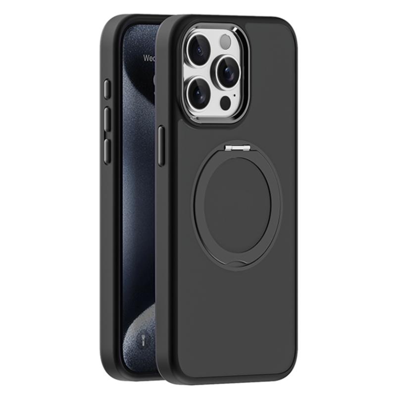 For iPhone 15 Pro Max Skin Feel Frosted MagSafe Magnetic Holder Phone Case(Black)