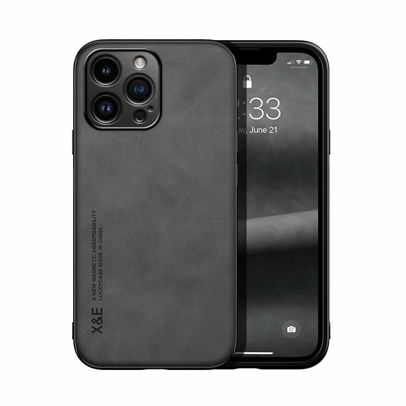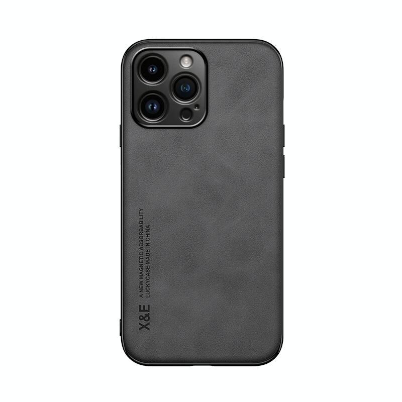 Θήκη για iPhone 15 Pro Max με υφή δέρματος και μαγνητική βάση (Σκούρο Γκρι)