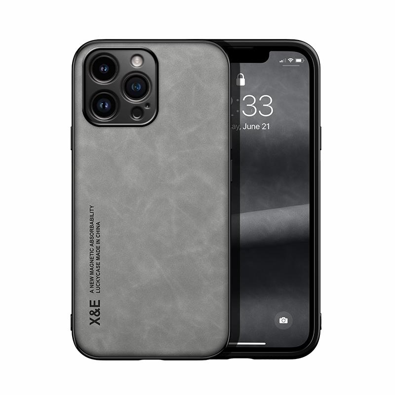 Θήκη για iPhone 15 Pro Max με υφή δέρματος και μαγνητική βάση (Ανοιχτό Γκρι)