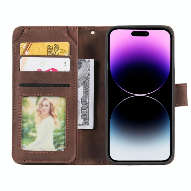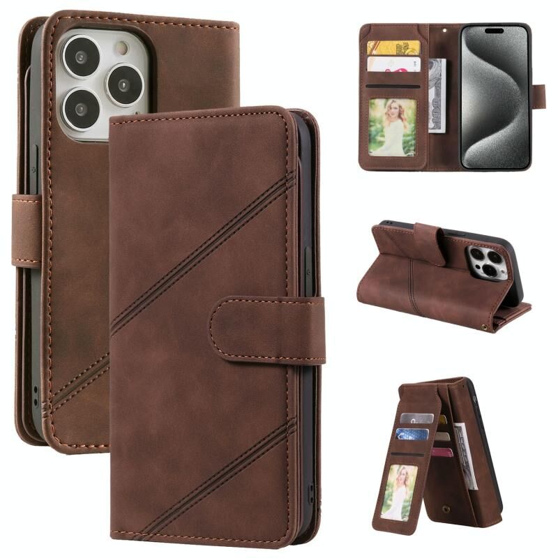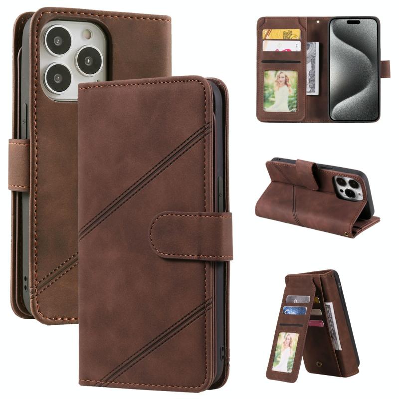 For iPhone 15 Pro Max Skin Feel Multi-card Wallet Leather Phone Case(Brown)