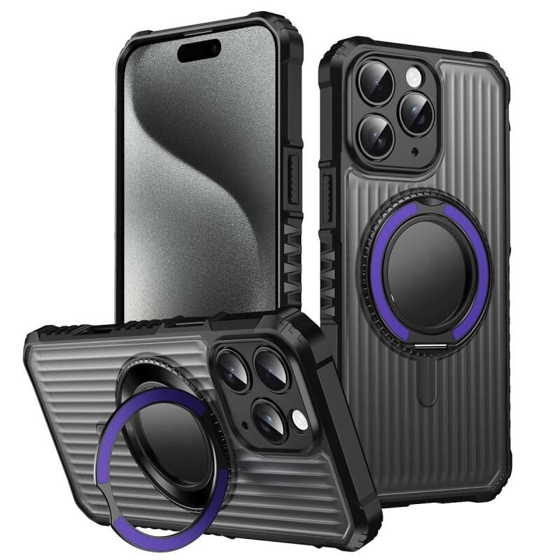 For iPhone 15 Pro Max Skin Sense Rotation Stand Semi-transparent Magsafe Phone Case(Deep Purple)